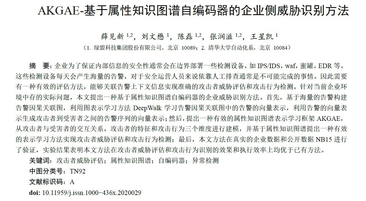 12ÔÂ18ÈÕÖÁ20ÈÕ£¬ÎªÆÚÈýÌìµÄµÚÊ®Èý½ìÖйúÅÌËã»úÍøÂçÓëÐÅÏ¢Ç徲ѧÊõ¾Û»á£¨CCNIS 2020£©ÔÚÖйúº£¿ÚÕÙ¿ª¡£AG¹«Ë¾¿Æ¼¼Ñо¿Ô±ËùÌá½»µÄÂÛÎÄ¡¶AKGAE-»ùÓÚÊôÐÔ֪ʶͼÆ××Ô±àÂëÆ÷µÄÆóÒµ²àÍþвʶ±ðÒªÁì¡·±»±¾½ìCCNISÈÎÃü²¢ÍƼöµ½¡¶Í¨Ñ¶Ñ§±¨¡·¡£»áÉÏ£¬ÂÛÎĵÚÒ»×÷ÕßAG¹«Ë¾¿Æ¼¼¼¯ÍŸ߼¶Çå¾²Ñо¿Ô±Ñ¦¼ûв©Ê¿½ÒÏþÖ÷ÌâÑݽ²¡£