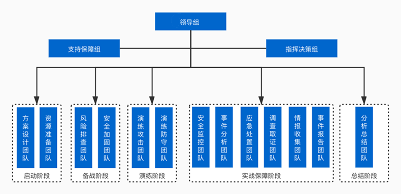 ÔÚÆô¶¯½×¶Î£¬Ó¦×ÅÊÖ½¨ÉèÒ»¸ö·Ö¹¤Ã÷È·µÄÍøÂçÇå¾²¹¥·ÀÑÝÁ·Ö°ÄÜÍŶӣ¬ÒÔ°ü¹ÜÇå¾²×Ô²éÊÂÇé»ñµÃ³ä·Ö¿ªÕ¹£¬Çå¾²·À»¤ÄÜÁ¦»ñµÃÓÐÓõÄÑéÖ¤¡£Òò´Ë±ØÐèÃ÷È·Çå¾²°ü¹ÜÍŶӵÄ×éÖ¯¼Ü¹¹ºÍÖ°Ôð»®·Ö¡£Îª×öºÃÑÝÁ·ÊÂÇ飬ÎÒÃǽ¨ÒéÒÔÈçÏ·½·¨½¨ÉèÇå¾²°ü¹ÜÍŶӵÄÕûÌå¼Ü¹¹£º