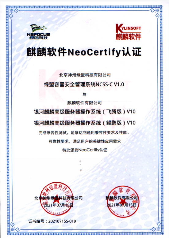 2021Äê7ÔÂ15ÈÕ£¬AG¹«Ë¾¿Æ¼¼Óë÷è÷ëÈí¼þÓÐÏÞ¹«Ë¾ÅäºÏÍê³ÉAG¹«Ë¾ÈÝÆ÷Çå¾²ÖÎÀíϵͳ£¨NSFOCUS Cloud Security System-Container£¬¼ò³ÆNCSS-C£©ÓëÒøºÓ÷è÷ë¸ß¼¶·þÎñÆ÷²Ù×÷ϵͳ(Èȳ±°æ)V10¡¢ÒøºÓ÷è÷ë¸ß¼¶·þÎñÆ÷²Ù×÷ϵͳ(öïÅô°æ)V10²úÆ·¼æÈÝÐÔ»¥ÈÏÖ¤²âÊÔ ¡£²âÊÔЧ¹ûÏÔʾ£¬AG¹«Ë¾ÈÝÆ÷Çå¾²ÖÎÀíϵͳÔÚÒøºÓ÷è÷ë²Ù×÷ϵͳϹ¦Ð§¼æÈÝÐÔÓÅÒì¡¢ÔËÐÐÎȹ̡¢ÐÔÄÜÌåÏÖÓÅÒì ¡£Õâ±ê¼Ç×ÅAG¹«Ë¾¿ÆÊÖÒÕ¹»»ùÓÚÈȳ±¡¢öïÅôϵÁÐCPU£¬ÒøºÓ÷è÷ë²Ù×÷ϵͳΪ¿Í»§ÌṩÐÅ´´ÈÝÆ÷ÔÆÇå¾²½â¾ö¼Æ»® ¡£