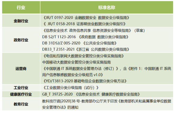 ÏÖÔÚº£ÄÚÓÐÐí¶àÐÐÒµ¡¢µØ·½ÒѾ­Öƶ©ÁËÊý¾Ý·ÖÀà·Ö¼¶µÄ±ê×¼ £¬ÏêϸÐðÊöÁËÊý¾Ý·ÖÀà·Ö¼¶µÄÁ÷³ÌÓë°ì·¨ £¬Ïà¹ØÐÐÒµ¡¢µØ·½µÄ·ÖÀà·Ö¼¶±ê×¼ÈçÏ£º